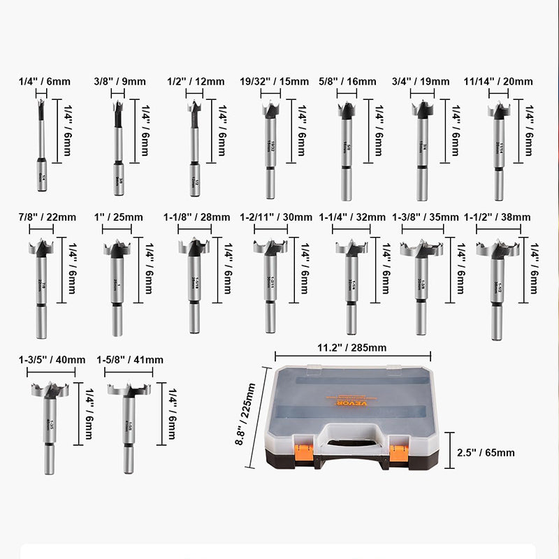 KOMPLETTA SPECIFIKATIONER FĂR UNIVERSELLA TILLĂMPNINGAR: Inkluderar utbytbara borrkronor Ί15-Ί35 mm (storlekar 15-35 mm tillgĂ€ngliga). Kompatibel med elektriska borrmaskiner och slagskruvdragare. Perfekt för möbeltillverkning, snickerier eller gör-det-sjĂ€lv-reparationer - mĂ„ngsidig för bĂ„de proffs och hobbyister.