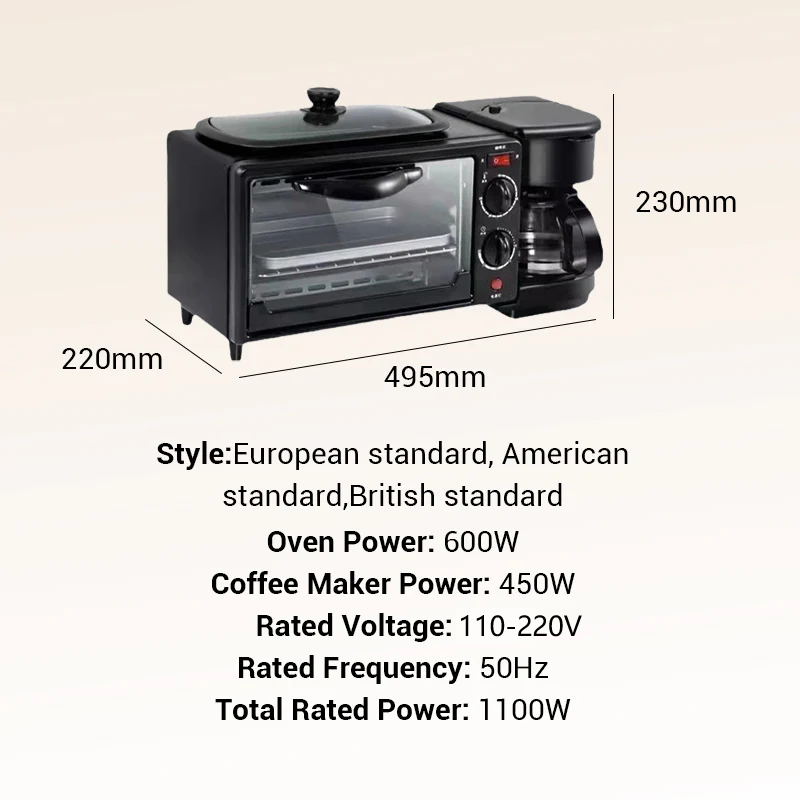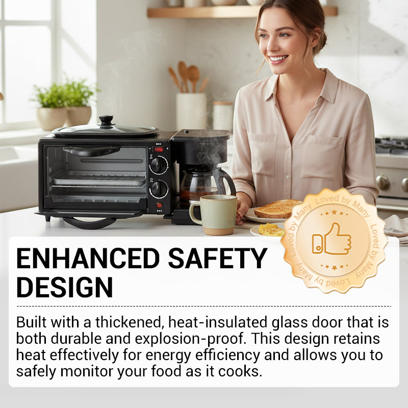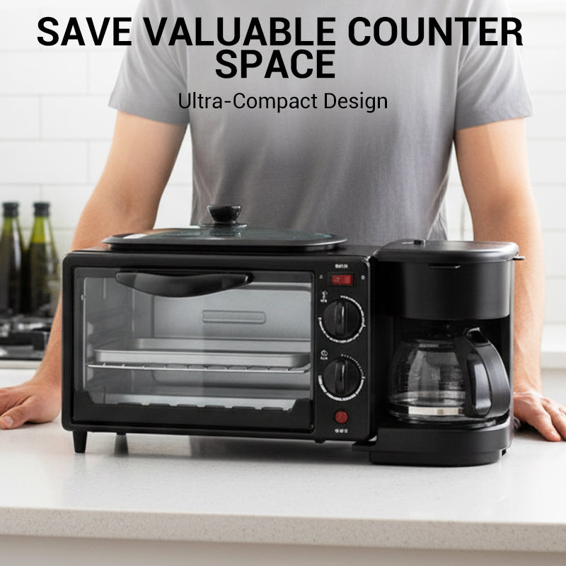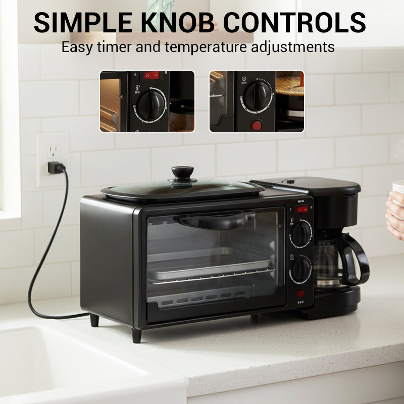 3-I-1 FRUKOSTSTATION - Effektivisera din morgonrutin genom att tillaga hela din frukost med en kompakt apparat. Den hÀr enheten kombinerar en brödrost, en kaffebryggare och en stekhÀll, vilket sparar vÀrdefullt bÀnkutrymme och tillagningstid.