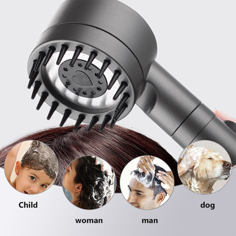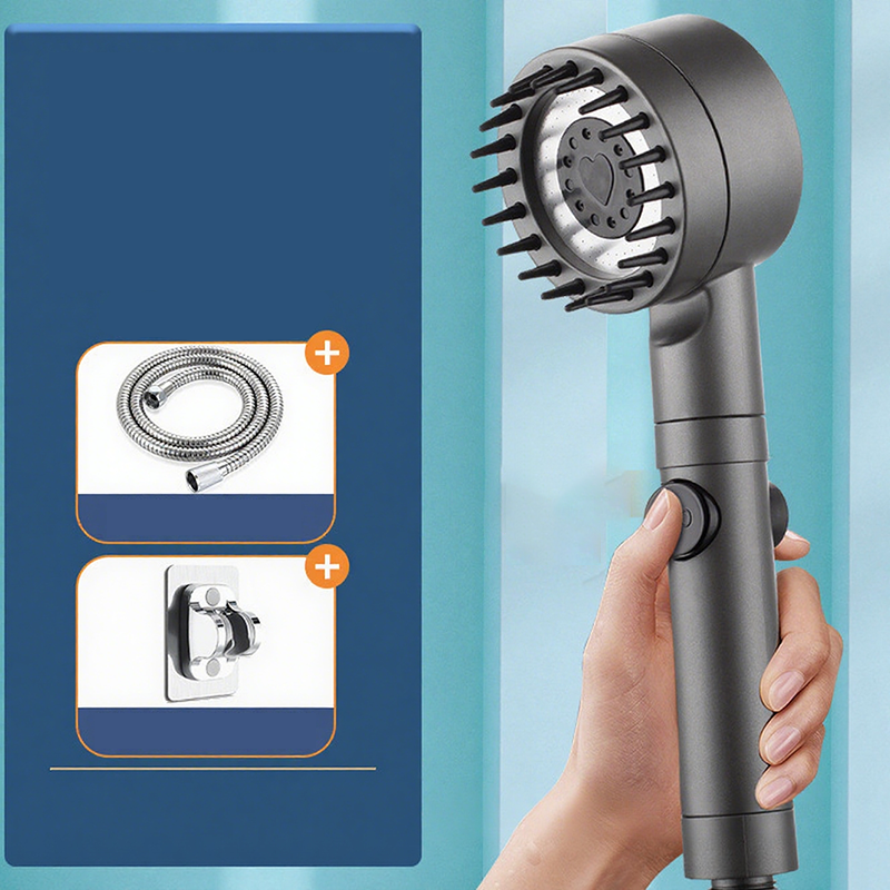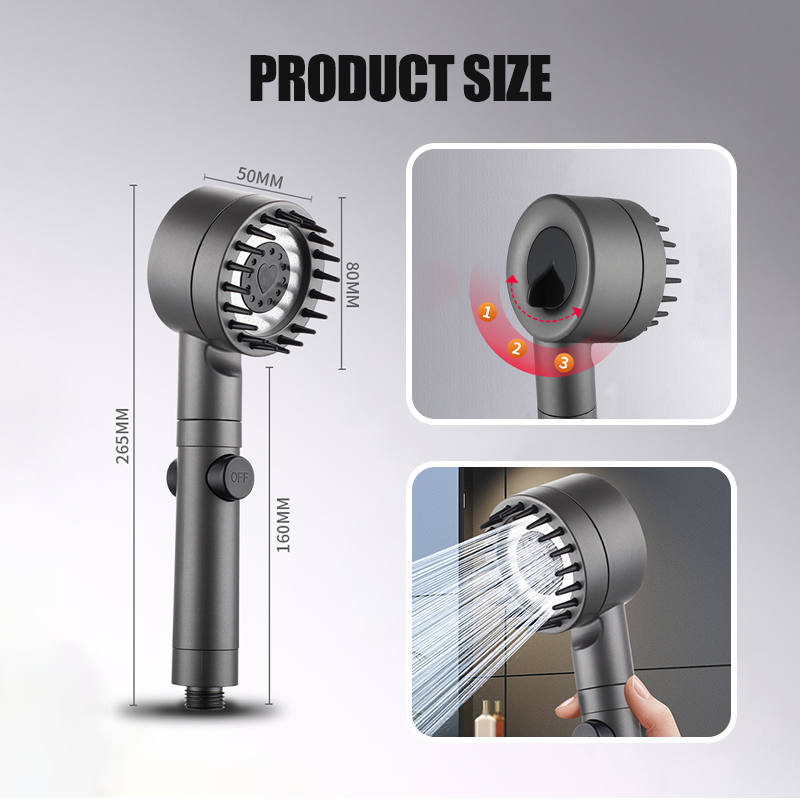 SILIKONMASSAGE-FUNKTION: Specialdesignade munstycken av mjuk silikon ger en mild massageeffekt under högt tryck. Med tvÄ intensitetsnivÄer hjÀlper den till att lindra muskelspÀnningar och förbÀttra cirkulationen, vilket förvandlar den dagliga duschen till ett uppfriskande sjÀlvvÄrdande ritual.