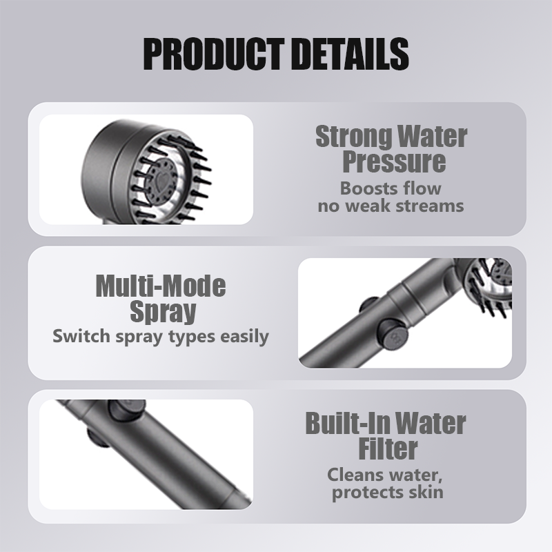 KRAFTFULL VATTENBOOST-TEKNIK: Denna duschhuvud Àr konstruerad för att förbÀttra vattenflödet och ger ett starkt, jÀmnt tryck Àven i miljöer med lÄgt vattentryck. SÀg adjö till svaga, droppande strÄlar och njut av en mer uppfriskande, spa-liknande dusch som sköljer bort tvÄl och rester grundligt.