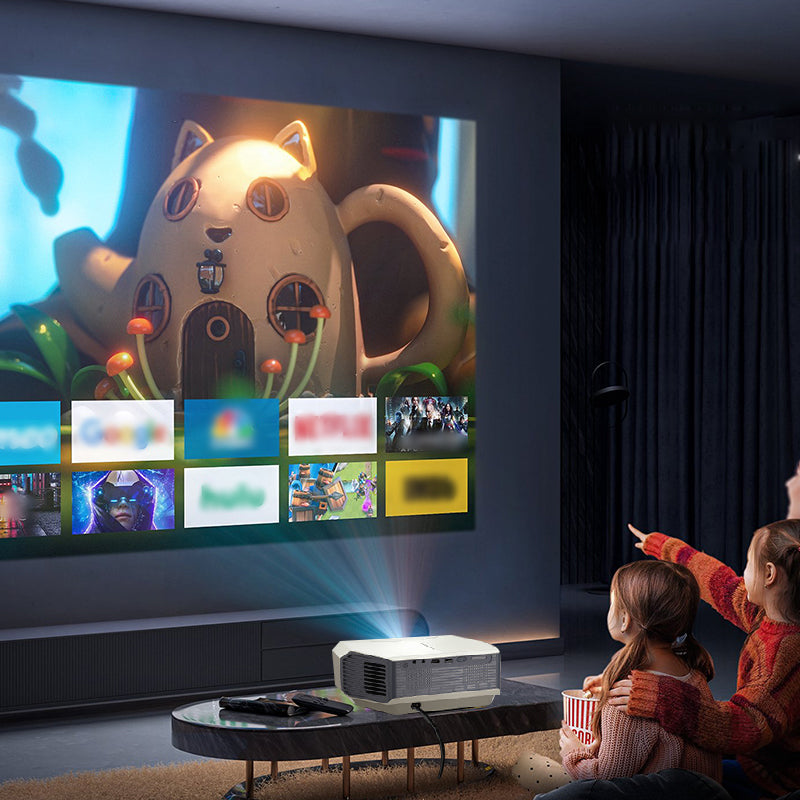 FLERA ANSLUTNINGSMÖJLIGHETER - Den här projektorn erbjuder en rad anslutningsmöjligheter, inklusive Wi-Fi och Bluetooth, så att du enkelt kan ansluta till olika enheter. Streama innehåll direkt från din smartphone, surfplatta eller bärbara dator, vilket gör den till ett mångsidigt val för både underhållning och presentationer.