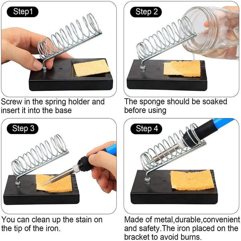 KOMPONENTER AV PREMIUMKVALITET:Innehåller en lödkolv, 5 utbytbara spetsar, ett stativ och ett värmetåligt lock, allt utformat för hållbarhet och säkerhet. Det ergonomiska greppet garanterar maximal komfort, vilket gör den perfekt för långvarig användning.