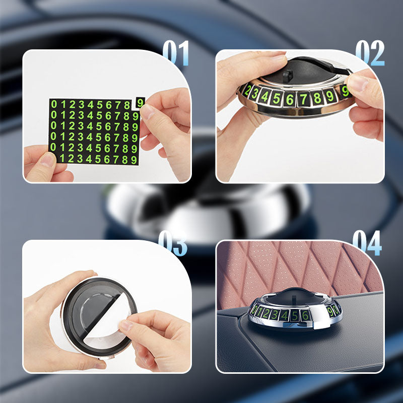 Paketet innehåller: 1 biltelefonhållare med parkeringsnummerskylt