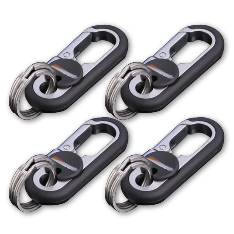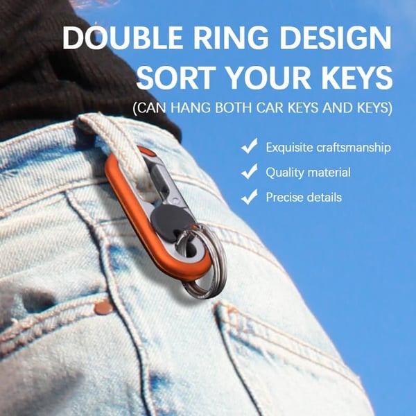FUNKTIONELL: En tryckknapp för att öppna nyckelringens krok, sÄ att du enkelt kan hÀnga den i bÀltesöglan eller ta loss den. TvÄ nyckelringar möter kravet pÄ att förvara flera nycklar sÀkert.