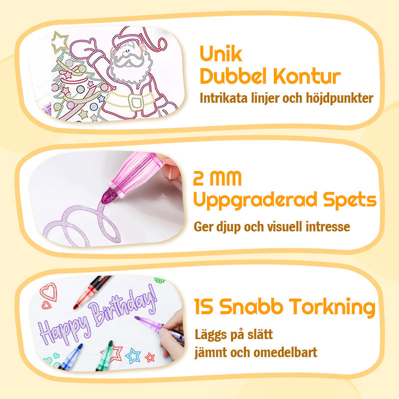 Konturpennor med dubbla linjer för konst och DIY-projekt