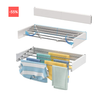 FÀllbar och infÀllbar design: StÀllningen kan enkelt fÀllas ihop och dras tillbaka nÀr den inte anvÀnds. Denna utrymmesbesparande funktion sÀkerstÀller att torkstÀllet förblir diskret och ur vÀgen, samtidigt som det ger gott om torkutrymme nÀr det behövs.