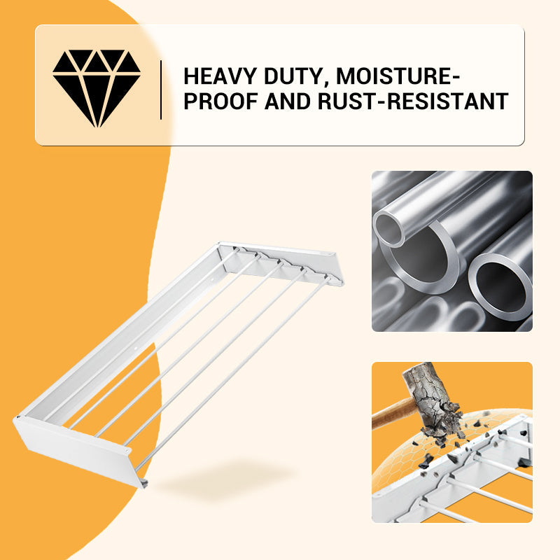 VÀggmonterad design som sparar utrymme: Maximera ditt utrymme med det hÀr vÀggmonterade torkstÀllet, som Àr perfekt för smÄ lÀgenheter, tvÀttstugor eller balkonger. Det utnyttjar effektivt vertikalt vÀggutrymme och frigör vÀrdefullt golvutrymme för andra behov.