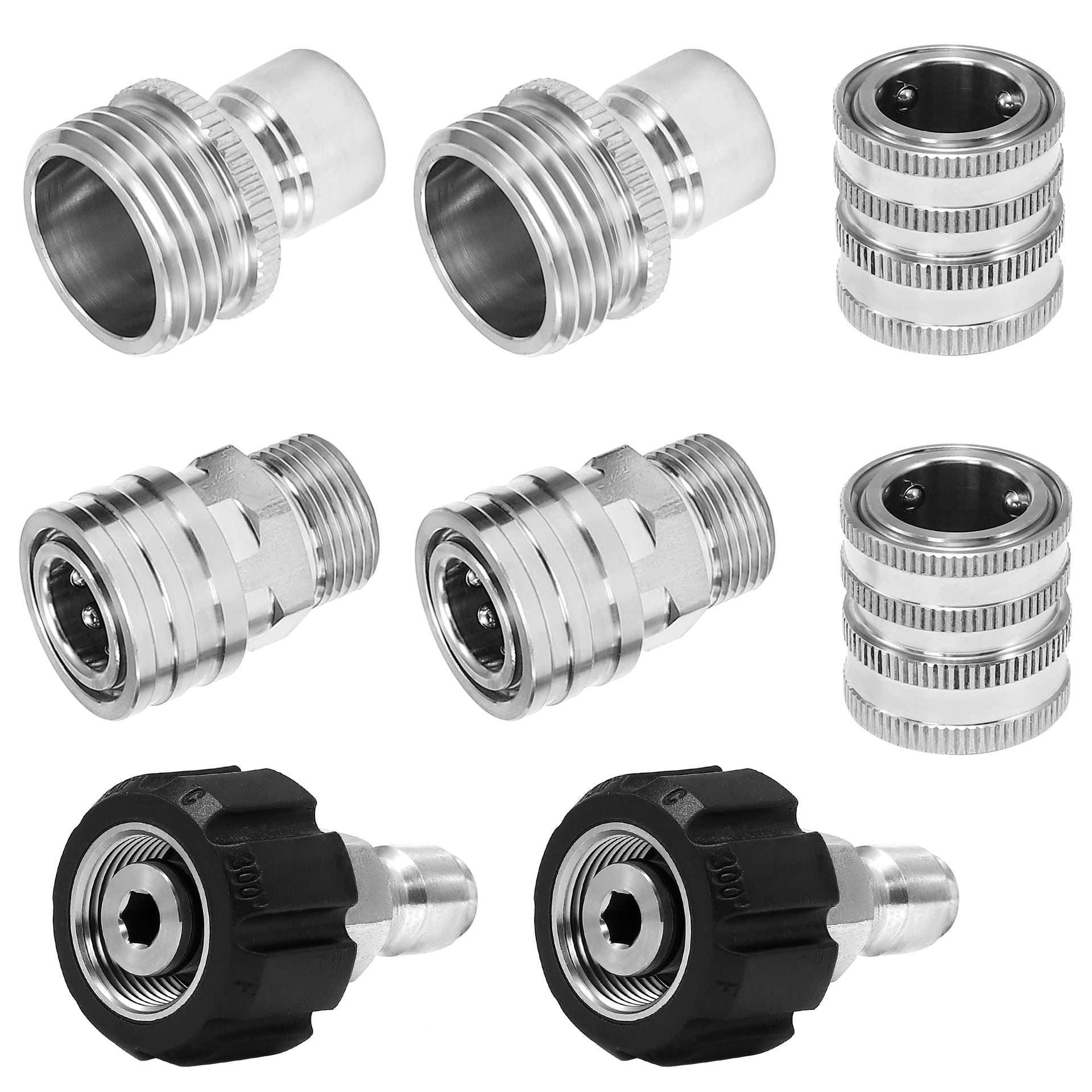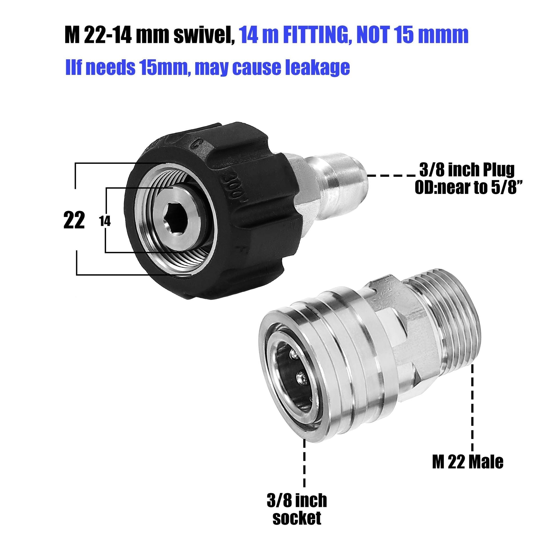 STOR KOMPATIBILITET: Passar för olika mÀrken och modeller av högtryckstvÀttutrustning och slangar. Standard M22 SWIVEL-grÀnssnitt med 3/8 tums snabbkoppling och 3/4 tums snabbkopplingsdesign gör den mycket anvÀndbar och möter behoven hos olika anvÀndare.