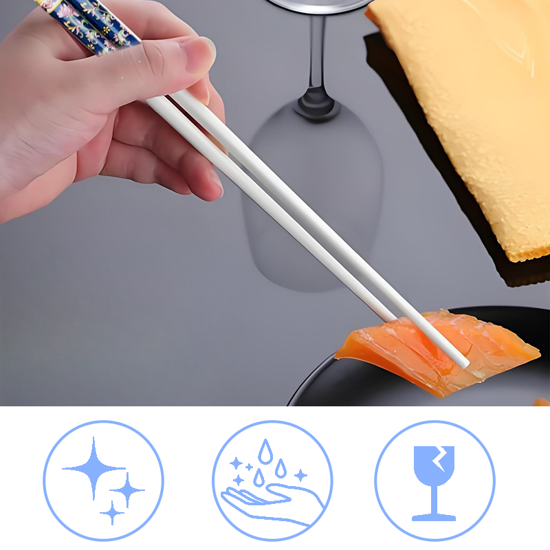 ÖVERLÄGSEN MATERIAL: Tillverkade av högkvalitativ keramik är dessa ätpinnar inte bara visuellt tilltalande utan också säkra och hygieniska. Det keramiska materialet är resistent mot fläckar och lukter, vilket säkerställer långvarig skönhet och funktionalitet. Det ger en slät yta som är lätt att rengöra och underhålla.