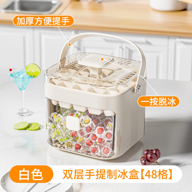 - Enkel tillgÄng till is: isbricka med lock och behÄllare Följ instruktionerna för att göra is enkelt med en knapptryckning, enkel och bekvÀm anvÀndning, spara tid och anstrÀngning.