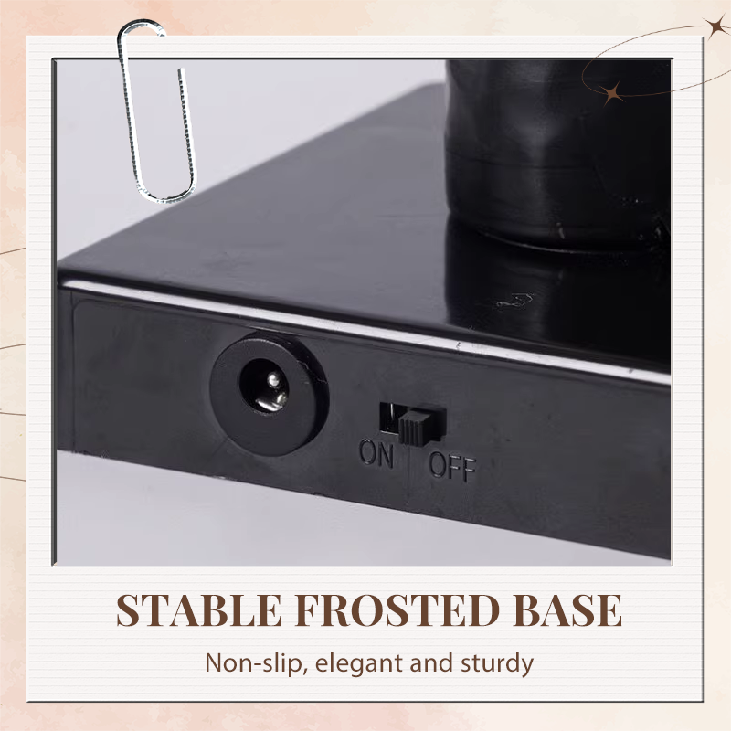 STABIL, HÖGKVALITATIV BAS: Den frostade, fyrkantiga bågformade basen ger utmärkt balans och motståndskraft mot välte. Den strukturerade ytan förbättrar inte bara greppet på ytor utan ger också ett raffinerat, högkvalitativt utseende.