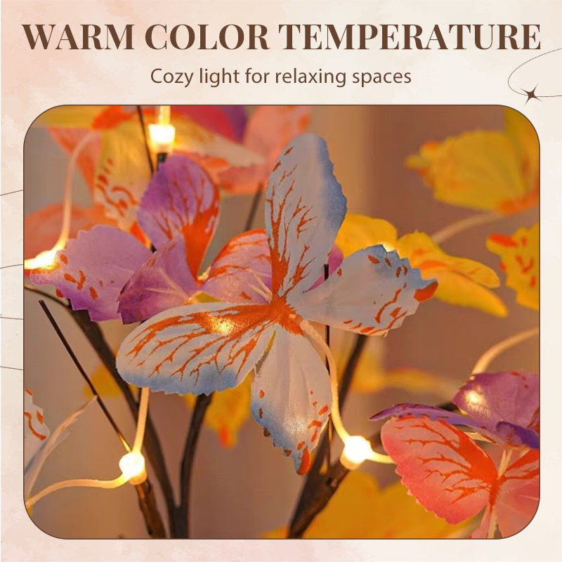 FESTLIG ATMOSFÄR FÖR ALLA TILLFÄLLEN: Förvandlar vanliga utrymmen till magiska miljöer med en touch av fantasi. Oavsett om det används till jul, alla hjärtans dag eller för vardagsinredning, ger det färgglada fjärils- och trädmotivet glädje och charm, vilket gör det perfekt som present eller säsongsdekoration.