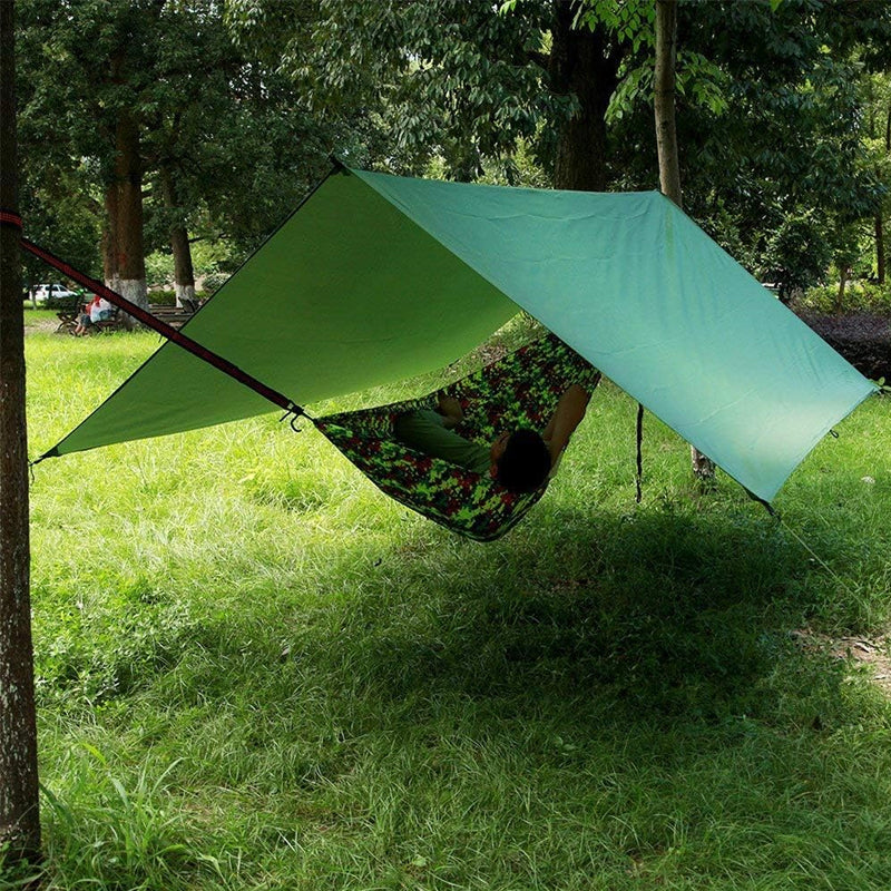 MULTI-PURPOSE - Detta tarpskydd för camping har flera funktioner, såsom en tältduk, hängmatteskydd, enkelt tält, tältfotavtryck, markduk och solskydd. Den fungerar också som en picknickmatta, vilket ger mångsidighet för ryggsäck, vandring, camping, trekking och olika utomhusaktiviteter.