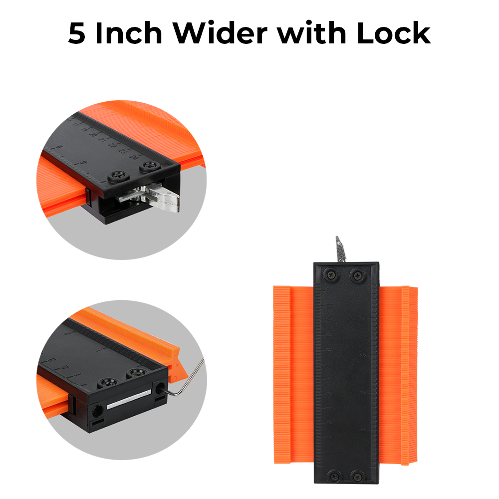 Vår konturmätare mäter 5 tum & 6 tum & 10 tum, kan användas för att mäta formen på oregelbundna föremål , en omedelbar mall för att markera exakta kakelskärningar. Du trycker bara på konturmätaren på en av formerna. Trimma konturen och skär den i form.