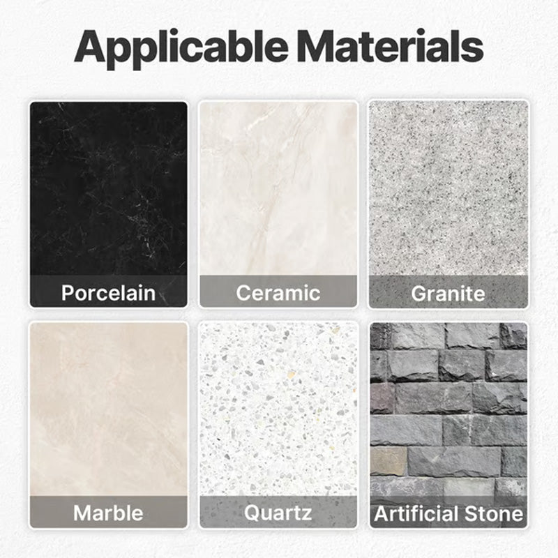 MÅNGSIDIGT TORRT/VÅTT DRIFT : Detta blad är utformat för optimal anpassningsbarhet och stöder både torra och våta skärlägen. Det hanterar enkelt en mängd olika hårda material, inklusive keramik, marmor och granit, vilket gör det perfekt för olika renoverings- och snidningsapplikationer.
