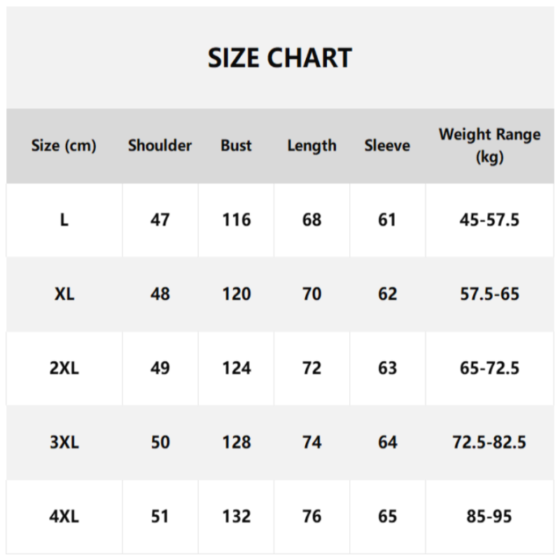 Storlek: L, XL, 2XL, 3XL, 4XL