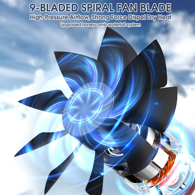 2 I 1 MULTIFUNKTIONELL DESIGN: Kombinerar kylflÀkt och luftfuktare i en kompakt enhet. Dimfunktionen sÀnker den omgivande temperaturen samtidigt som den tillför luftfuktighet till torr luft, vilket skapar en behaglig mikromiljö för arbetsytor, sovrum eller smÄ utrymmen utan skrymmande utrustning.