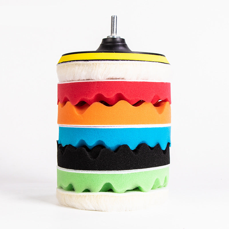 Paketet innehÄller: 1 * elektrisk polermaskin, platt svampdyna, mjuk boll, handtag, sjÀlvhÀftande dyna, skiftnyckel, fiberöverdrag, mjukt överdrag