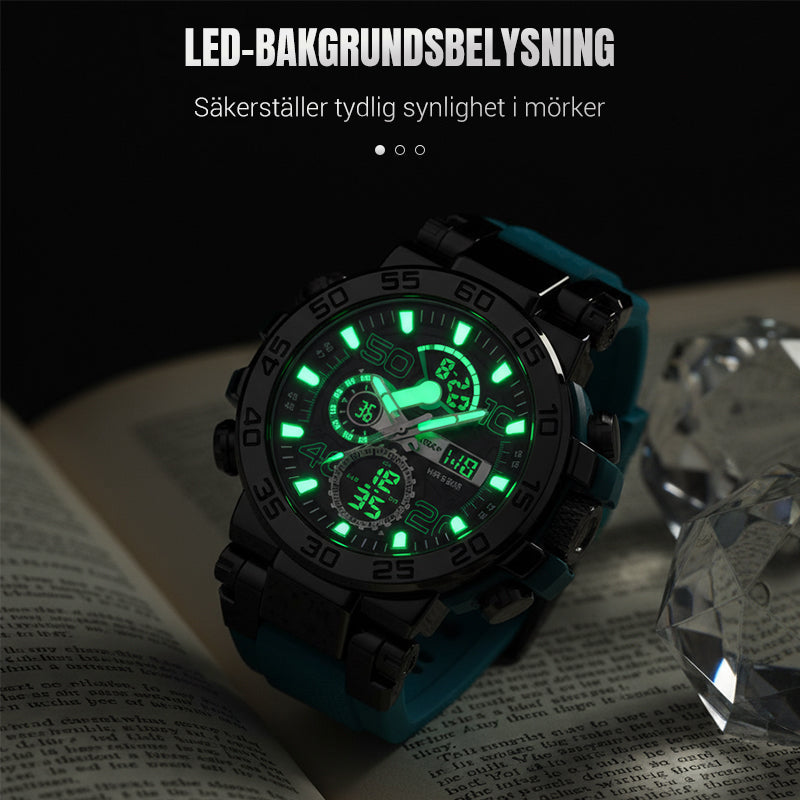 OPTIMAL NATTSIKT – Utrustad med högintensiv LED-bakgrundsbelysning förblir den digitala displayen tydlig och lättläst i miljöer med svagt ljus eller nattetid. Detta säkerställer att du kan kontrollera tid, datum eller andra funktioner snabbt och bekvämt när som helst, oavsett om det är inomhus eller utomhus.