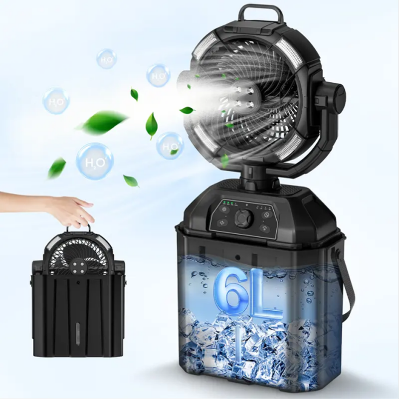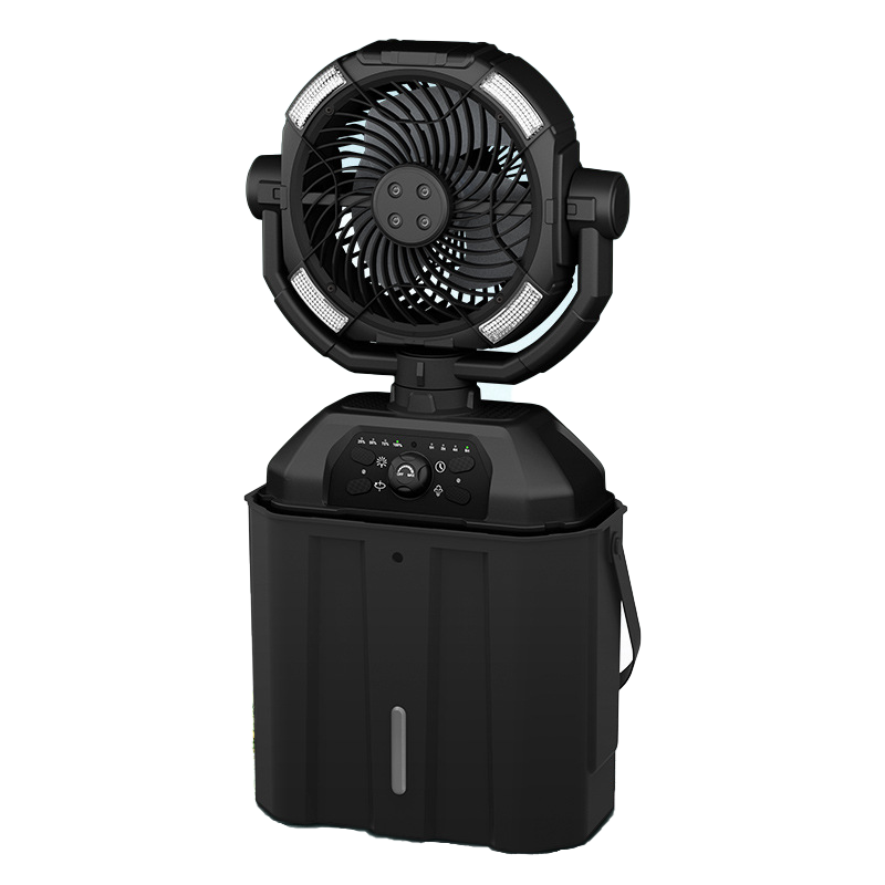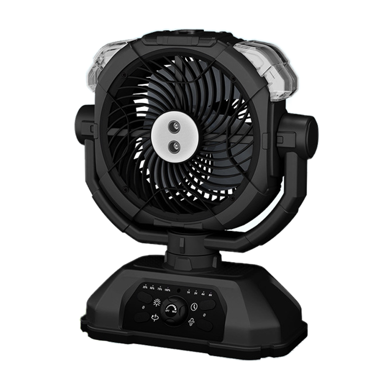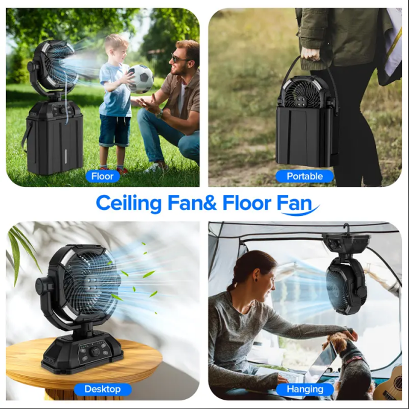 TRIPLA FUNKTIONER FĂR MĂ NGSIDIG ANVĂNDNING: Denna flĂ€kt kan enkelt omvandlas frĂ„n en bordsflĂ€kt till en takmonterad flĂ€kt eller sprayflĂ€kt, vilket gör den anpassningsbar till alla campingsituationer. RotationsomrĂ„det pĂ„ 90° och den hopfĂ€llbara förvaringslĂ„dan gör den platsbesparande och lĂ€tt att transportera, samtidigt som den bibehĂ„ller ett kraftfullt luftflöde dĂ€r det behövs.