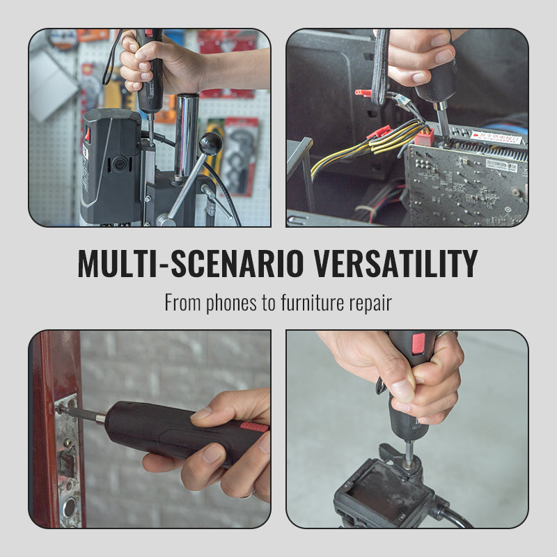 MĂ NGSIDIG FĂR FLERA ANVĂNDNINGSOMRĂ DEN: Perfekt för ett brett spektrum av tillĂ€mpningar, frĂ„n montering av möbler och installation av dörrlĂ„s till reparation av smartphones, bĂ€rbara datorer och bilkomponenter. Fungerar bĂ„de som precisionsskruvmejsel och miniborr, vilket gör den till ett oumbĂ€rligt verktyg för hantverkare, tekniker och husĂ€gare.