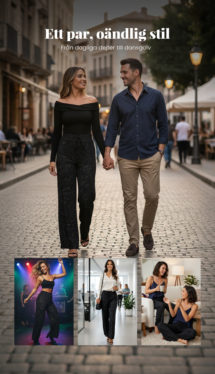 💖SISTA DAGENS REA 60% RABATTđŸ„°Dambyxor med paljettmönster och vida ben och resĂ„r i midjan