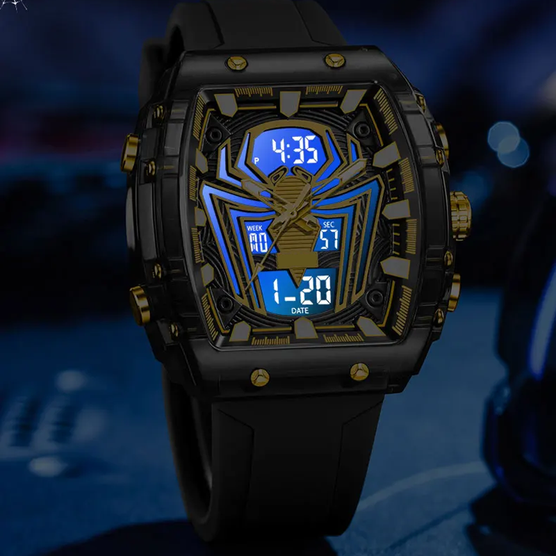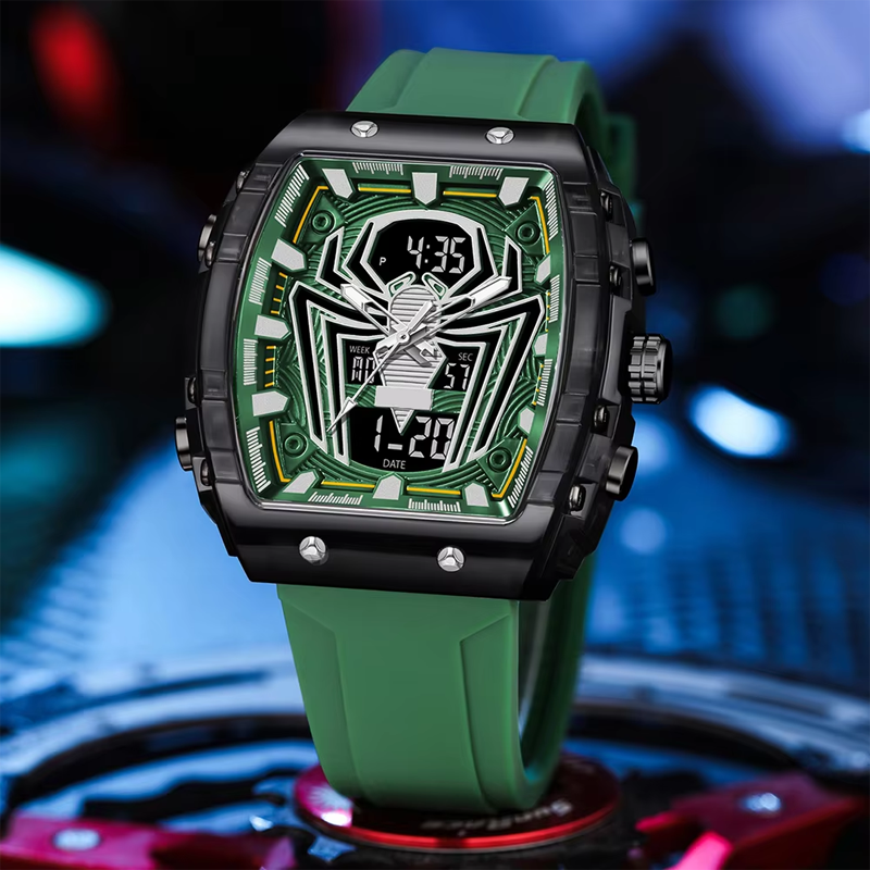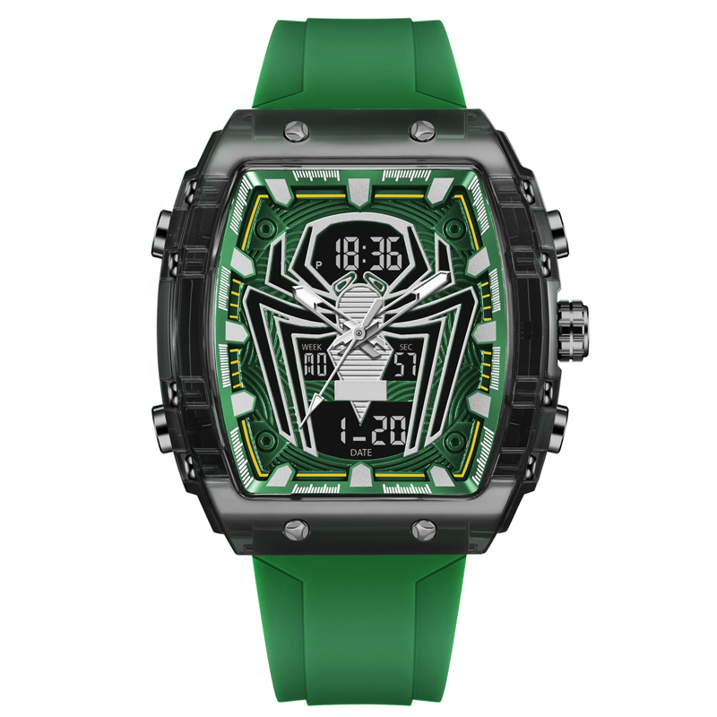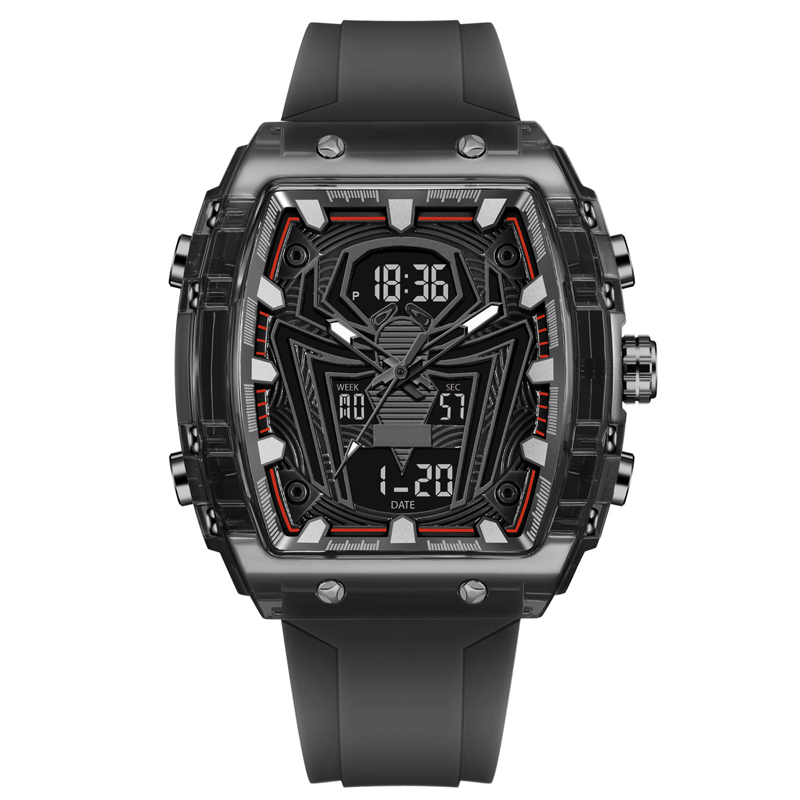 5 ATM VATTENTÄTT SKYDD – Regn, stänk och till och med en snabb simtur – den här klockan klarar allt tack vare sin vattentäthet på 5 ATM. Den helt tätade konstruktionen och det vattentäta silikonarmbandet håller allt torrt under klockan.