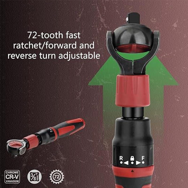 DIN NYA DAGLIGA DRIVKRAFT – Upplev perfekt balans och komfort med en lätt design som väger 1,21 pund. Den universella 3/8-tumsdrivningen integreras sömlöst med hela din hylssamling, vilket gör den till den enda spärrnyckeln du behöver.