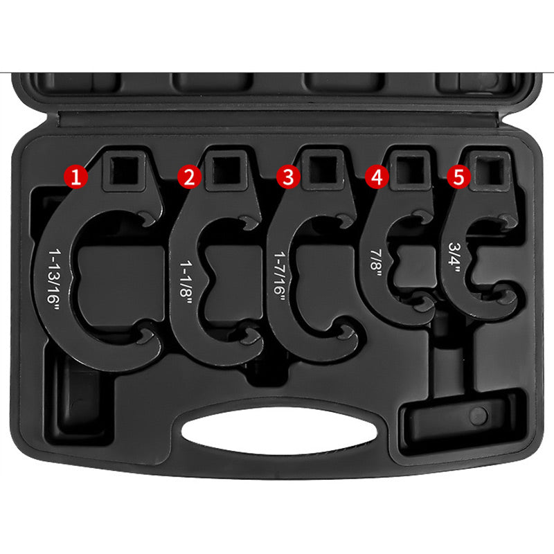 KOMPLETT VERKTYGSSATS MED 5 DELAR: Den här verktygssatsen i 5 delar är nödvändig för underhåll och reparation av fordonets styrsystem. Den möjliggör exakta justeringar av dragstänger och pitman-armar, vilket säkerställer korrekt hantering, inriktning och övergripande fordonssäkerhet.