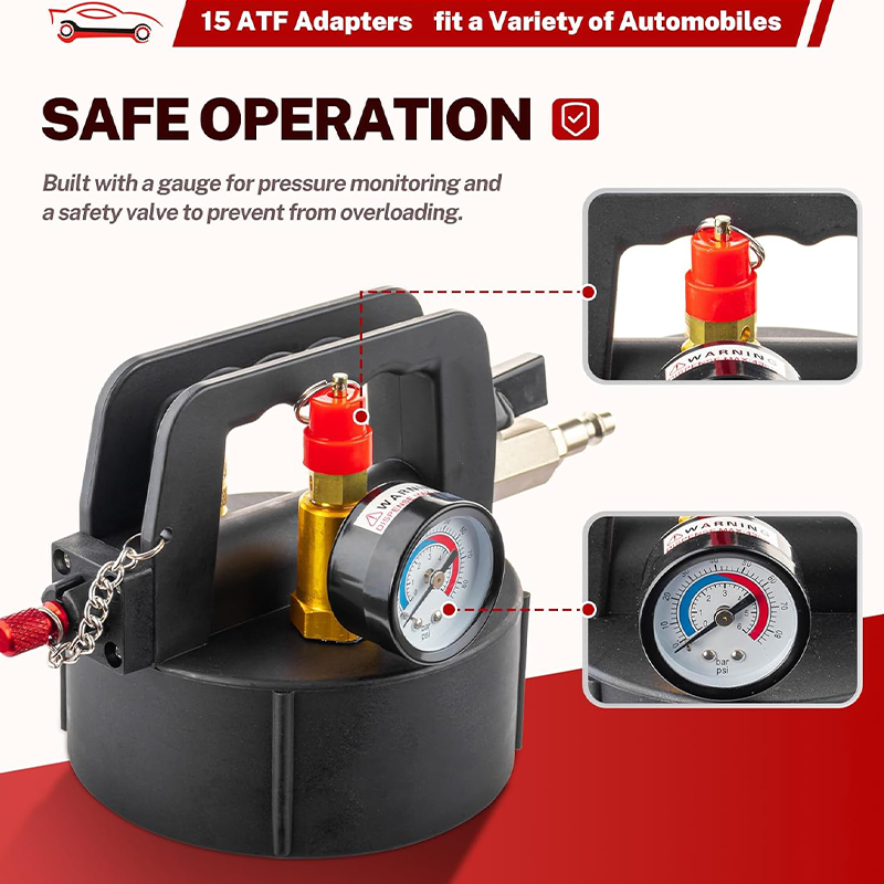 SĂKERHETSFUNKTIONER: Denna automatiska vĂ€xellĂ„dsvĂ€tskepump Ă€r utrustad med en tryckmĂ€tare och sĂ€kerhetsventil som gör det möjligt att kontrollera vakuumtrycket inuti under drift för att eliminera eventuella risker pĂ„ arbetsplatsen. Huvudenheten Ă€r avtagbar för enkel rengöring och underhĂ„ll.