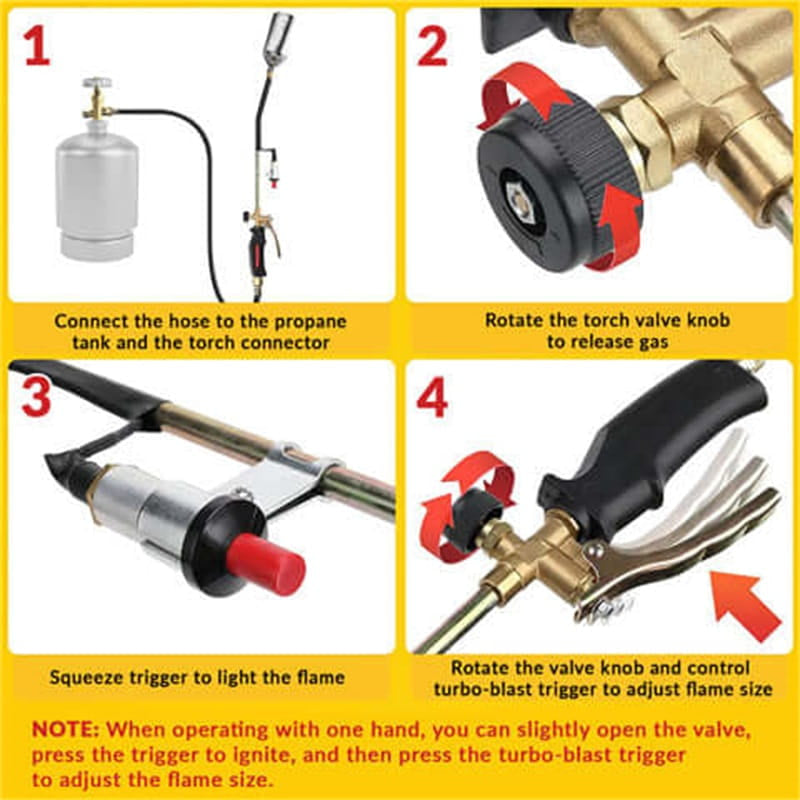GĂR ogrĂ€srensningen extremt arbetsbesparande och enkel: Denna ogrĂ€sbrĂ€nnare med propanfackla hjĂ€lper dig att brĂ€nna envisa ogrĂ€s i din trĂ€dgĂ„rd och gör det mycket lĂ€ttare att rensa ogrĂ€s. Den har en justerbar lĂ€ngd och kan till och med styras med en hand, vilket Ă€r mycket bekvĂ€mt. Det Ă€r 10 gĂ„nger mer arbetsbesparande Ă€n ett traditionellt bröllop genom att böja sig över.