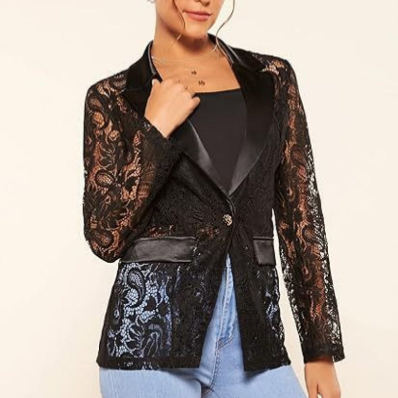 Paketet innehåller:1* Elegant blazer för kvinnor med spetsuppslag och en knapp